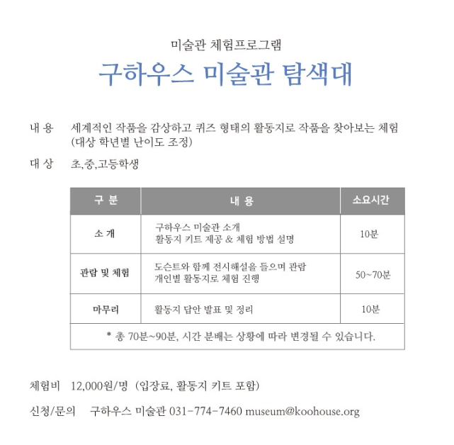 미술관에서 구 하우스 탐색대라는 프로그램을 항상 진행 중이라고 하니 함께 해봐도 좋을 것 같더라고요.